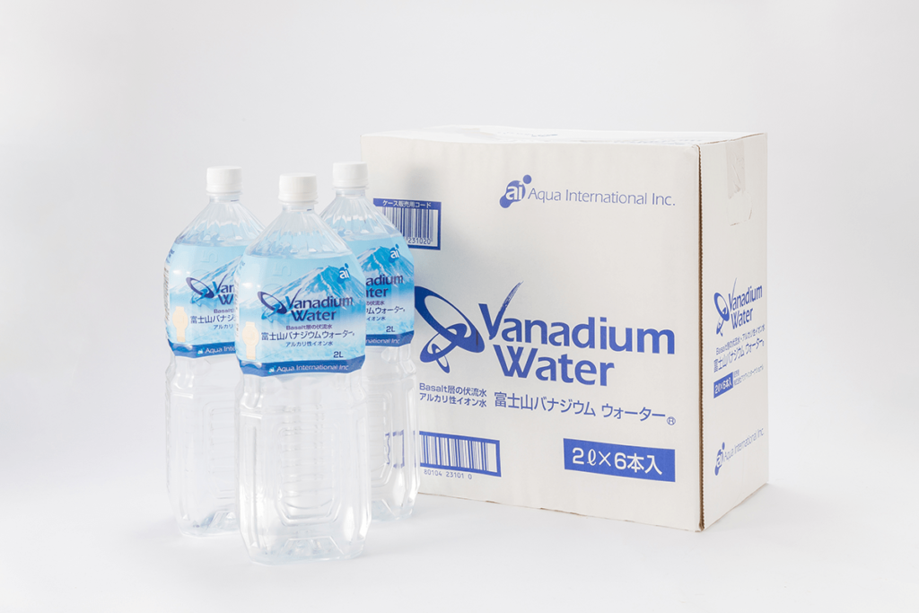 アクアインターナショナルは、富士山の玄武岩層の中に適量のバナジウムが含まれていることを見いだし、日本で最初にバナジウムウォーターを商品化しました。