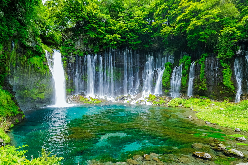 採水地は山梨県。「富士箱根伊豆国立公園」エリア内の標高1000m、富士山1合目にあたる場所。周辺は森林に囲まれ、上部には汚染源となる住宅・工場等の施設はない。クリーンルームを完備した採水施設において、富士山の地下に眠る玄武岩層約150mからくみ上げる鉱水はそのままでも安全性はきわめて高いといえます。アクアインターナショナルではこの水を4つのフィルターで濾過したあと複数の滅菌工程を経てパッケージされる安全性の高い水を製造しています。